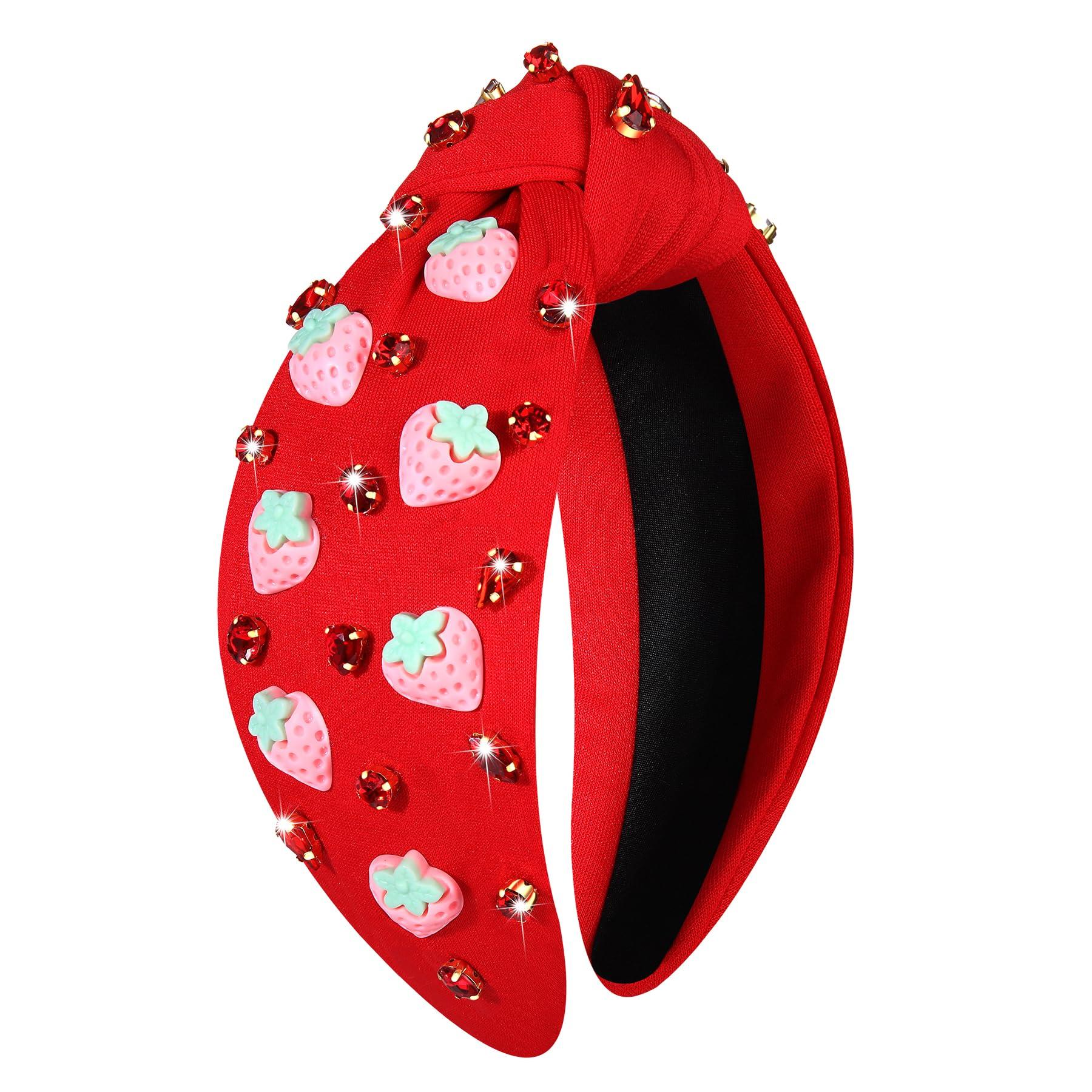 - Embrace the carefree spirit of summer with our fruit headband.Featuring a wide top knot headband with the strawberrry fruit charms,Let its vibrant colors and delightful design transport you to tropical paradise wherever you go.Get ready to turn heads and spread the summer vibes with this cutest strawberry headband!With its chic and trendy style, thisfruit knotted headband is a must-have accessory for any fashionista