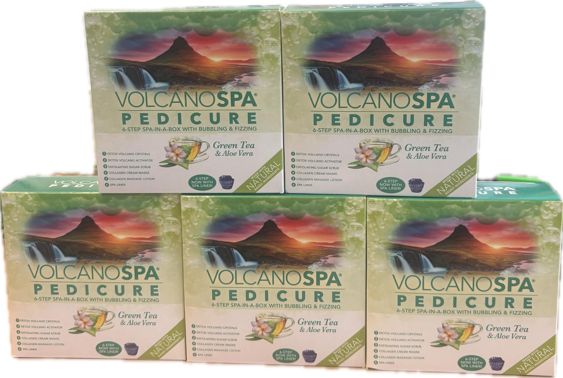 Volcano Spa Pedicure 6-Step Spa-In-A-Box With Bubbling & Fizzing,Green Tea & Aloe Vera,5 pack, Off White