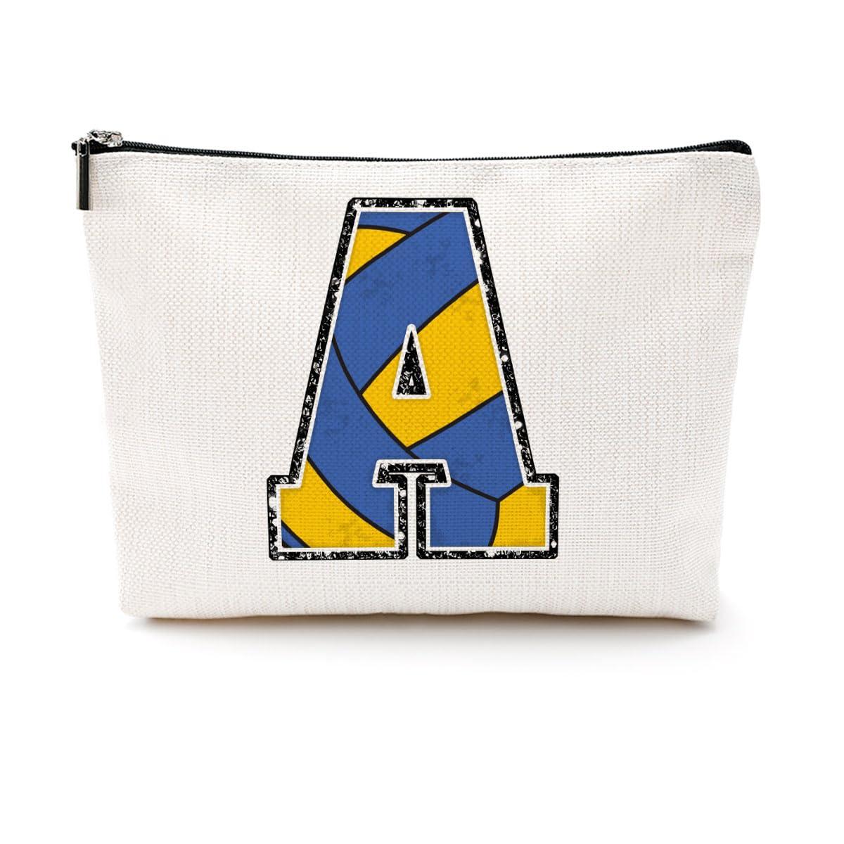 Volleyball Gifts Initial Makeup Bag Monogrammed Cosmetic Bag Letter A Zipper Pouch Volleyball Accessories for Girls Women Volleyball Player Coach Friend Volleyball Stuff Graduation Birthday Gifts