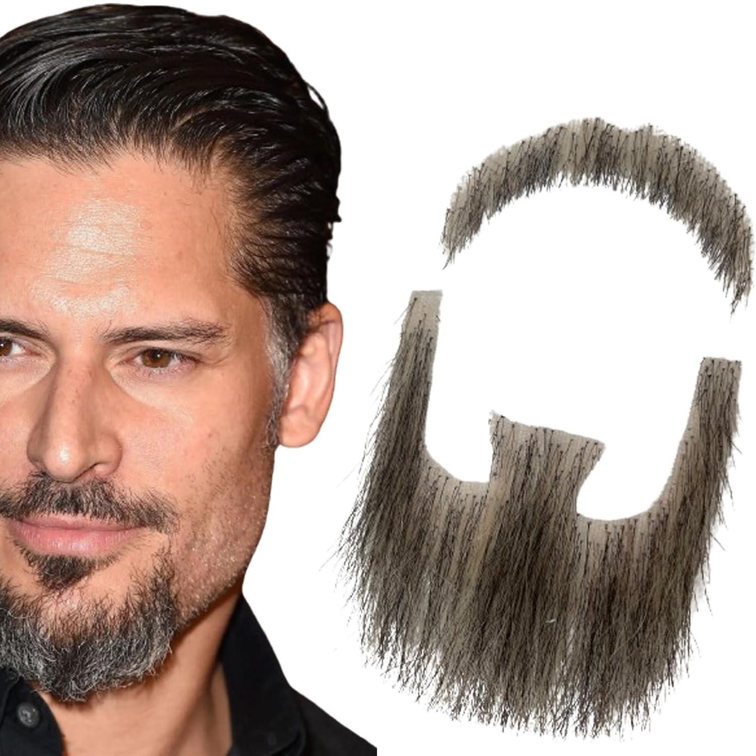 Voloria Voloria Fake Beard Realistic Human Hair Full Hand Tied Facial Hair Black Goatee False Beards Lace Invisible Fake FaceMustache Cosplay Costume Party (Style-1, Black Mixed White)