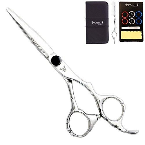 This is a medium weight, well balanced shear with a really smooth feel. It features a bent thumb ring and a lower finger rest, giving your wrist a more relaxed position. It has an extremely sharp convex edge, made with high quality Japanese steel.