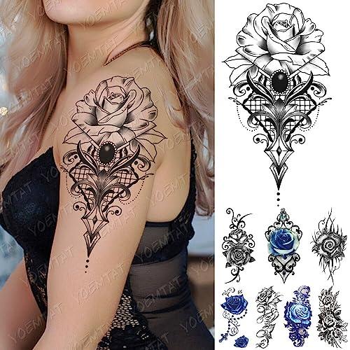Waterproof Temporary Tattoo Sticker Blue Rose Tattoos Flower Gem Lace Body Art Arm Sleeve Tatoo Women Men