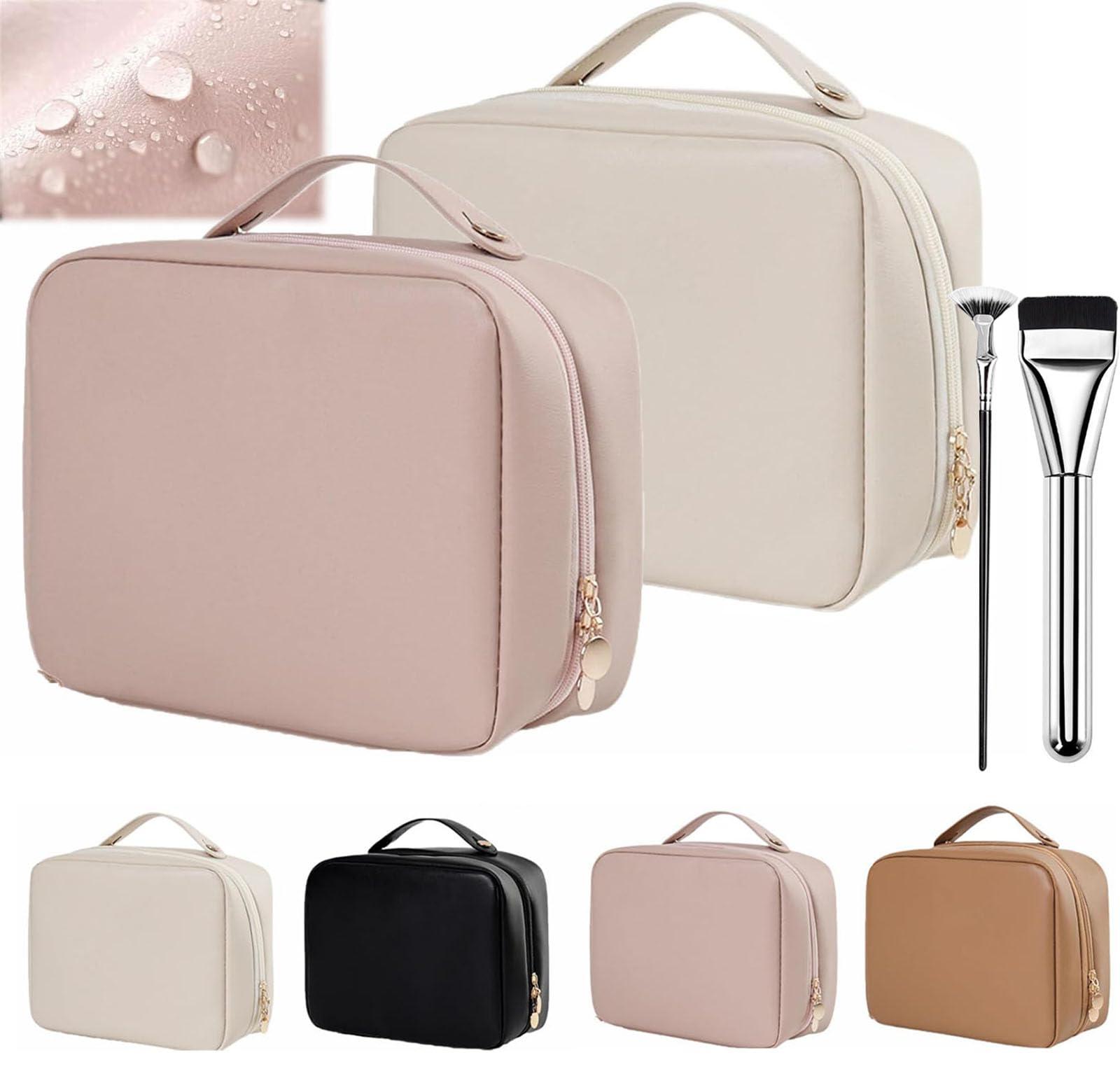 - Convenient handle, the leather makeup waterproof portable cosmetic bag's zippered opening is well designed, making it an easy-to-carry and very practical zipper bag.
