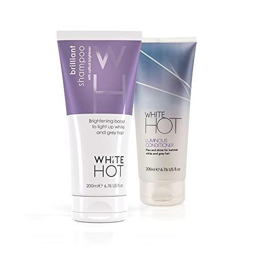 White Hot Brighten Duo: Brilliant Shampoo & Luminous Conditioner 200ml, lights up white & grey hair, banishes brassy tones, purple shampoo