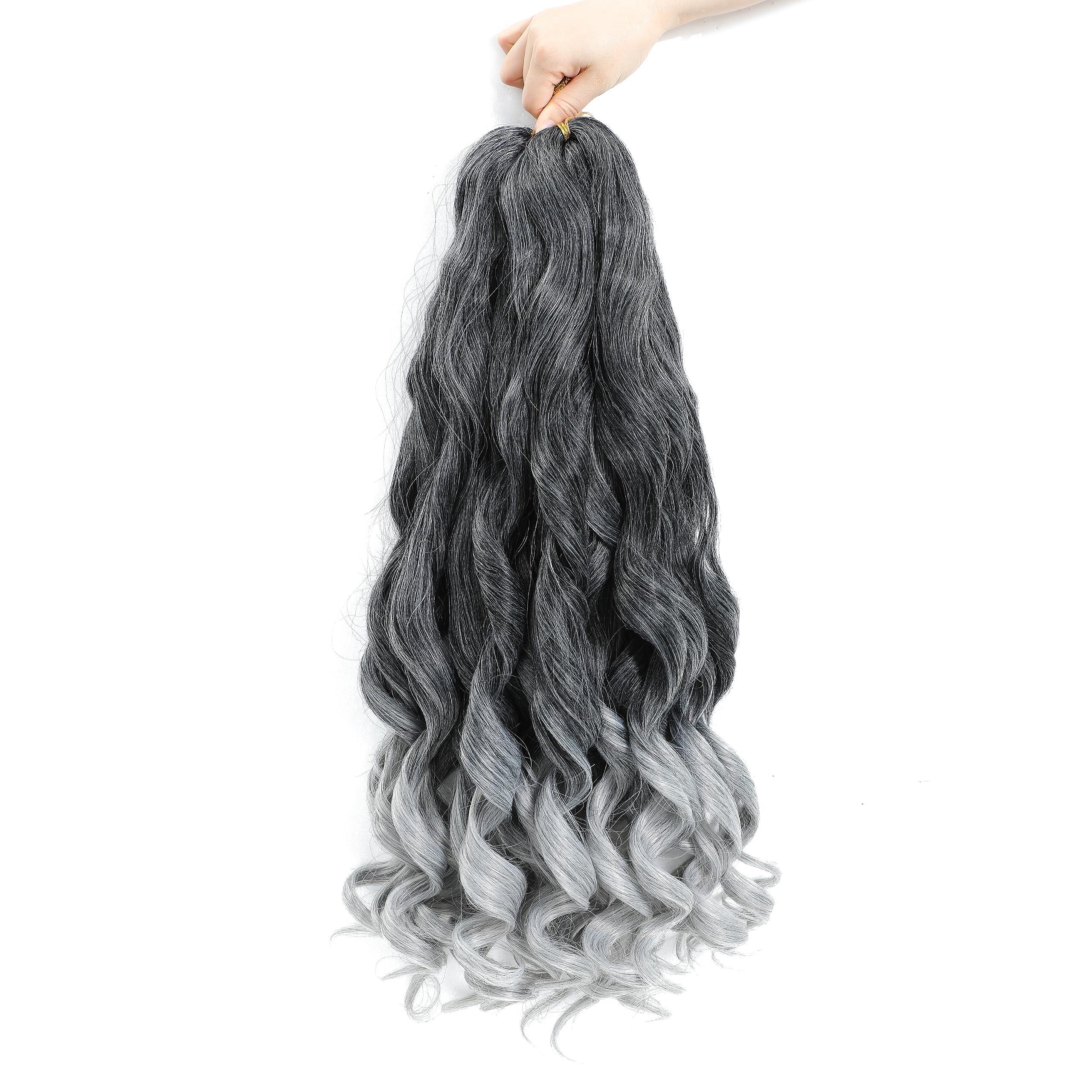 - Hair information: French Curly Braiding Hair 24inch,Color:tgray ,Weight:100g/Pack. Package: 6Pack/lot+ gifts ( One crochet ,Two Colored rubber bandsand Four Beads ).