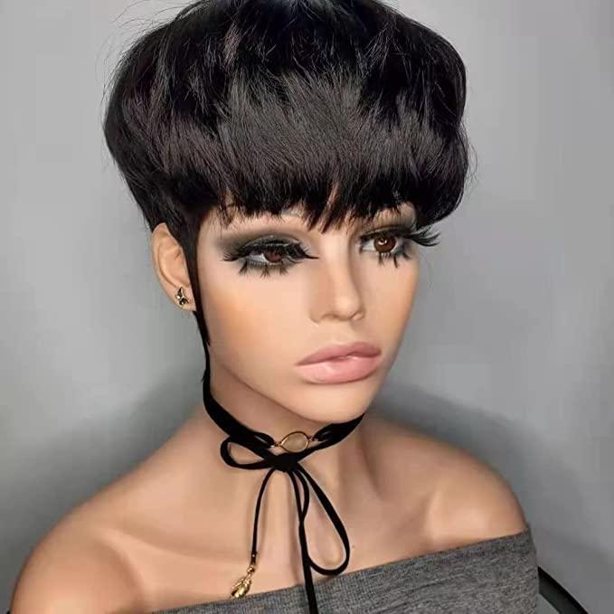 Color:Black Hair Short Pixie Cut Wigs for Black Women.