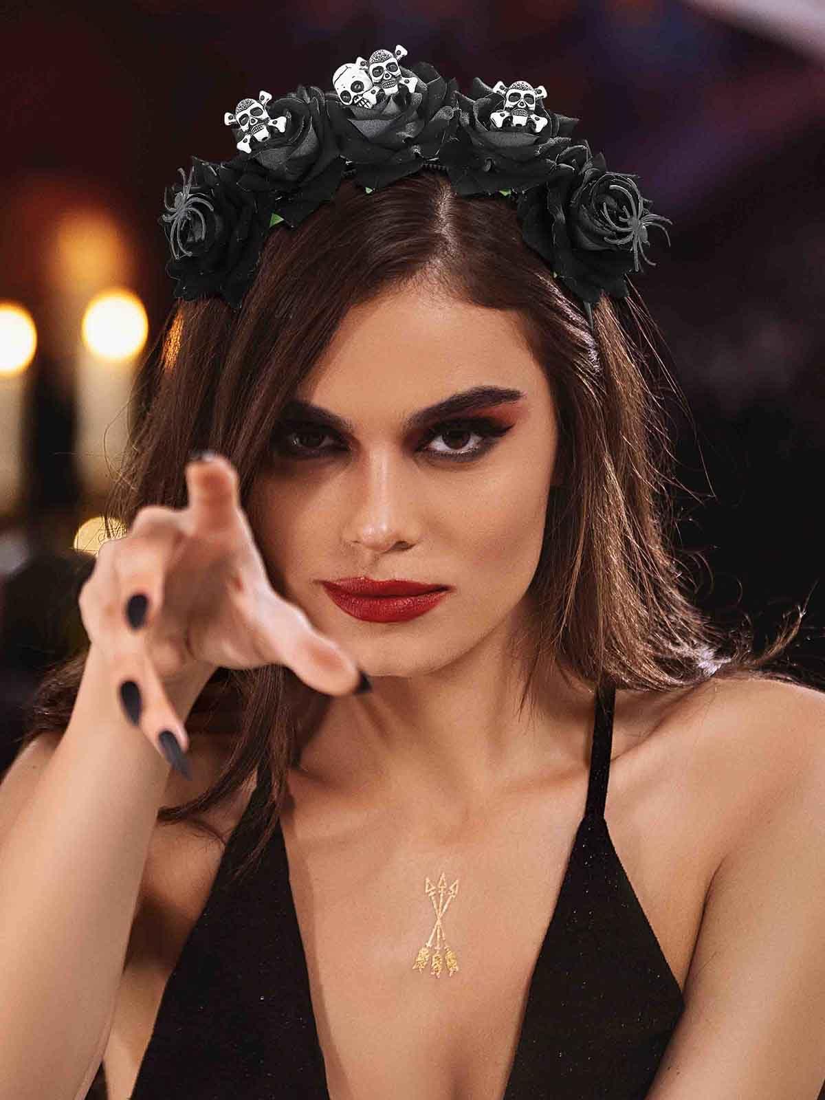 - Halloween floral rose hairbands are universal-fitting design, elastic with soft touch, easily to fit your head and comfortable to wear, one size fit for most people and any age, especially women and girls. High-quality headband and the flowers are not easy to fall off.