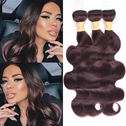 WOME 8A Peruvian Virgin Hair Body Wave 3 Bundles Remy Human Hair Weaves 100% Unprocessed Peruvian Body Wave Hair Extensions Dark Brown Color (12 12 12,#2)