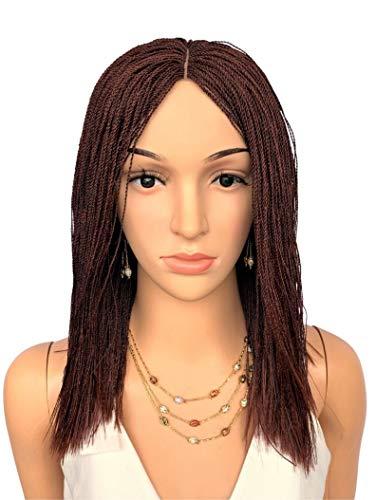- Material: High Quality 100% Kanekalon Synthetic Fibers, Natural Luster, Full Right Thickness, Neatly and Tightly Done, Tangle Free, Fully Handmade, Light Weight Micro Braided Wig with 2 by 6-inch center part lace closure.