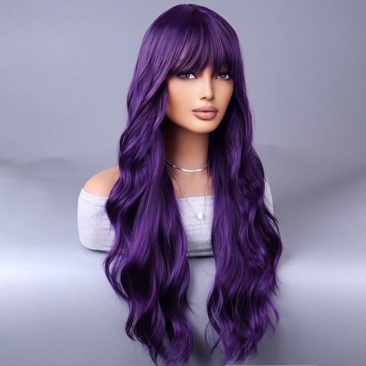 - Premium Synthetic Hair: Crafted from high-quality synthetic fibers, this WTHCOS dark purple WTHCOS Long curly wavy Hair Wig offers a soft and smooth texture that closely mimics natural human hair.