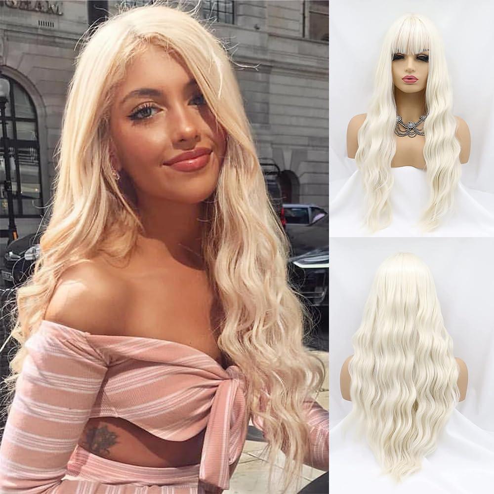 xiweiya Long Platinum Blonde Wig Long Body Wave White Blonde Synthetic Loose Wave Heat Resistant Fiber Wigs for Women 26inch