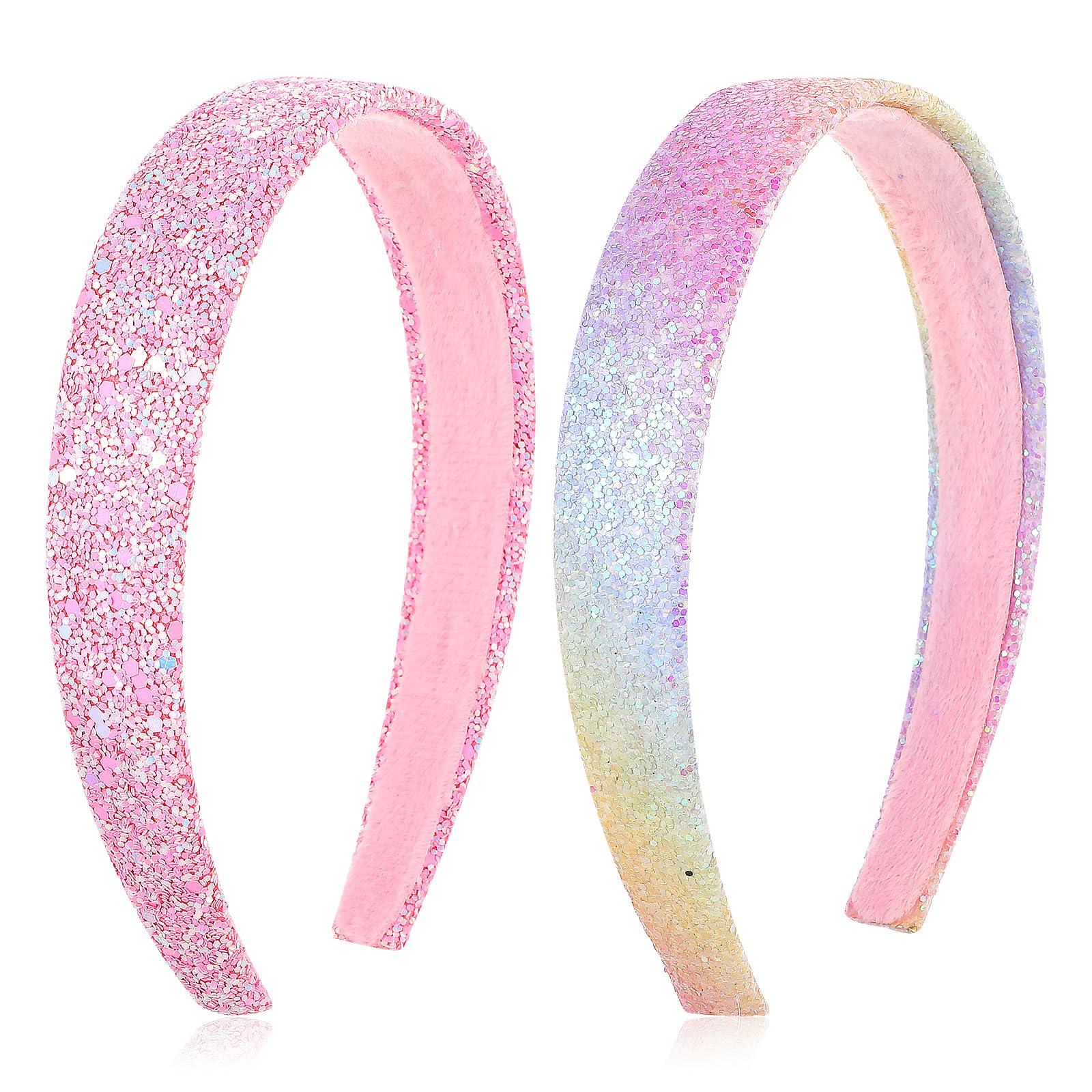 - Fashionable Shiny Hairbands: You will receive 2 shiny girl headbands, 1 gradient rainbow color, and 1 pink color. The size of each headband is approximately 5.71 x 4.92 x 0.98 inches. These headbands are suitable for most girls, adding fun and fashion to any outfit.