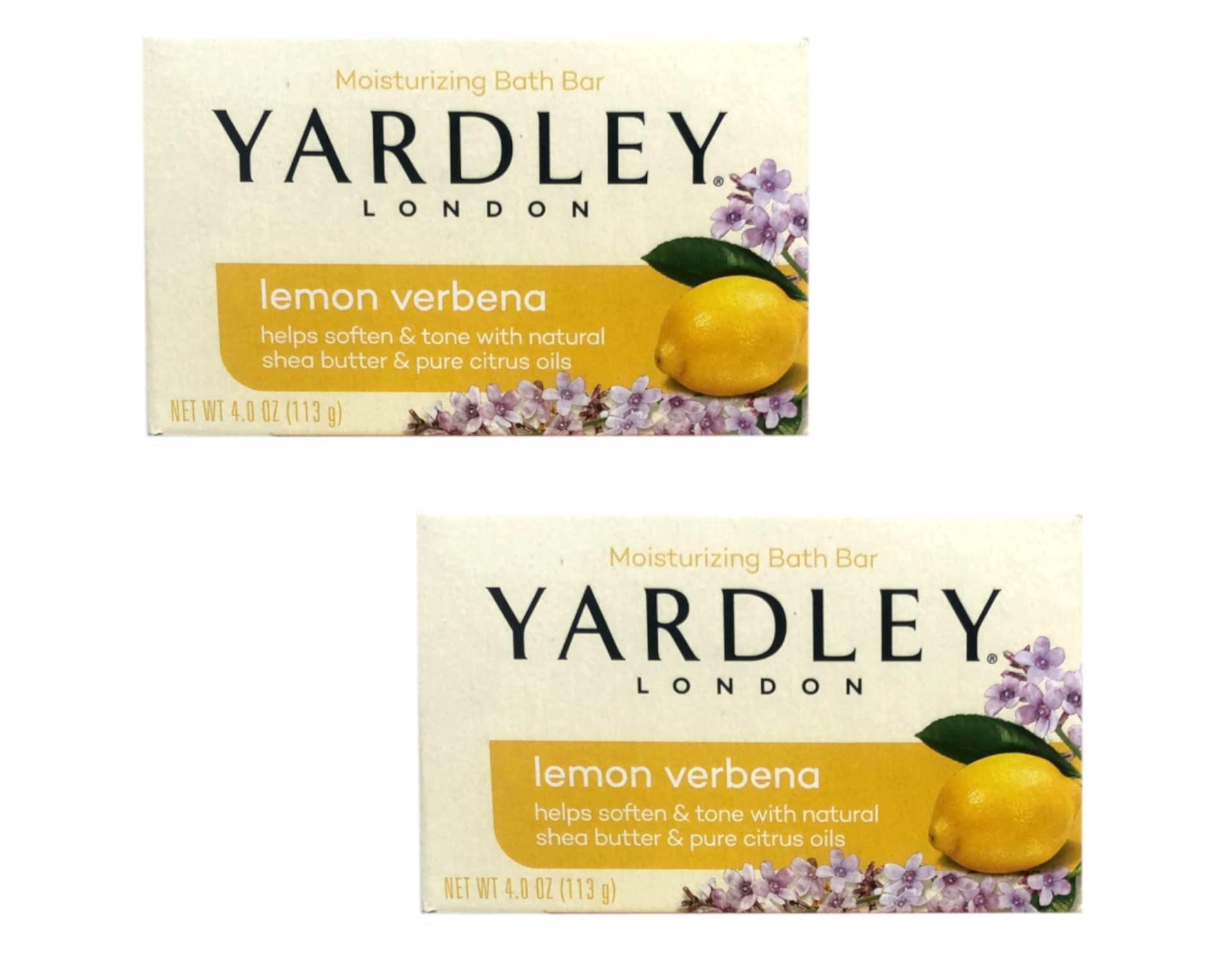 Yardley London Moisturizing Bath Bar Soap, Lemon Verbena, with Shea Butter & Pure Citrus Oils, Softens & Tones Skin, 4.0 oz (Pack of 2)
