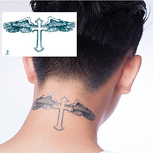 Yeeech Temporary Tattoos for Men Waterproof Long Lasting Neck Design Cross Blessed Wings America Tribal Religious (4 Sheets)