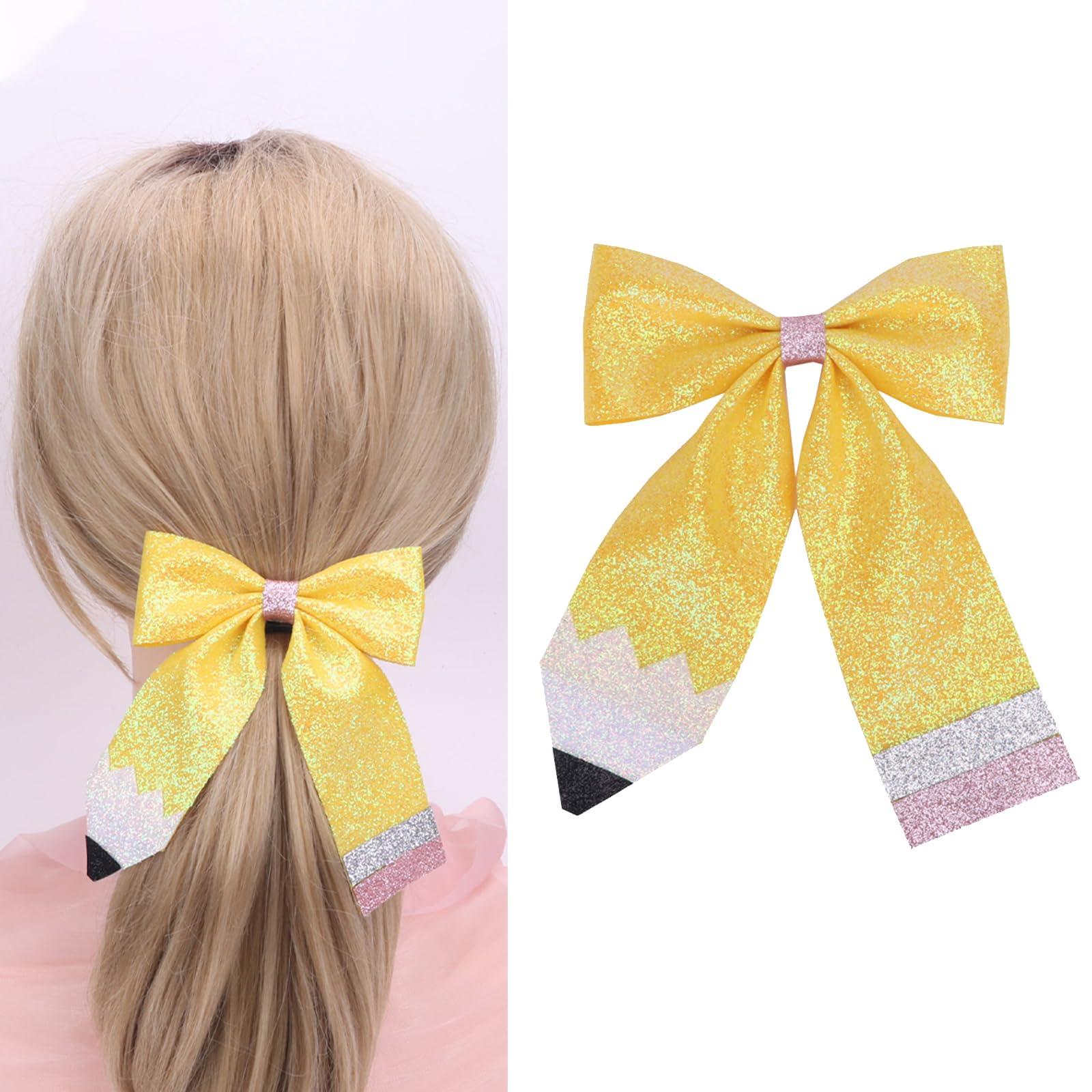 - :This back to school bow hair clip has a sparkling effect.The cute yellow pencil design of the hair clips makes them stand out and attracts attention.
