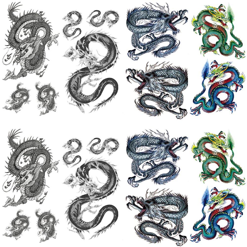 - 8 Sheets Temporary Tattoos dragon; 4 types, 2 pieces each.