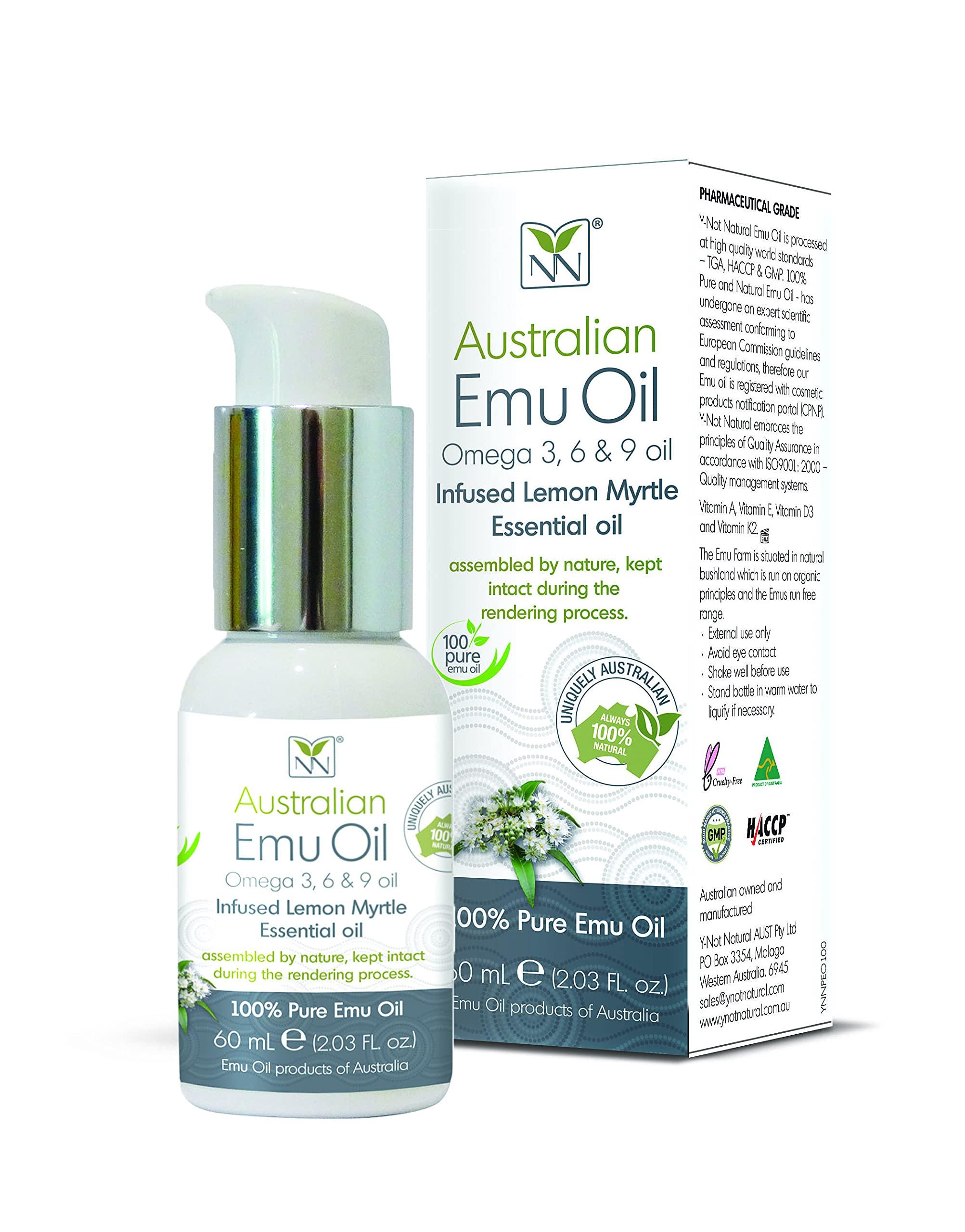 Y-Not Natural Ultra Pure Australian Emu Oil 60 mL - Luxury, Hospital Grade | Free Range Aboriginal Omega 3, 6 & 9 Oil Infused with Lemon Myrtle - Ultimate Moisturizer for Skin, Hair, Nails, and Scalp