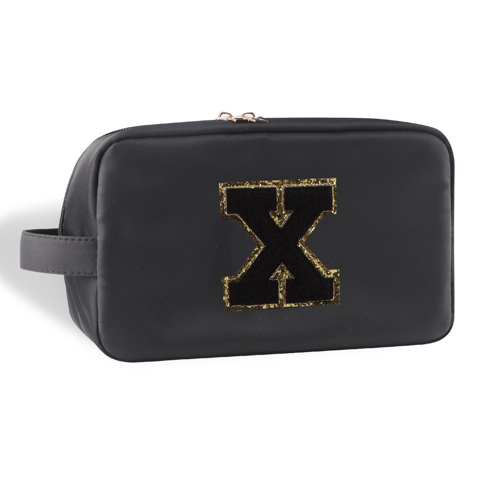 - Well-designed Makeup Bag: Monogram initial makeup bag with capital letter sewn on the front for simple and stylish looks, sturdy never dropped. Portable handle for easy carry ways and suitable for daily make-up and cosmetics.