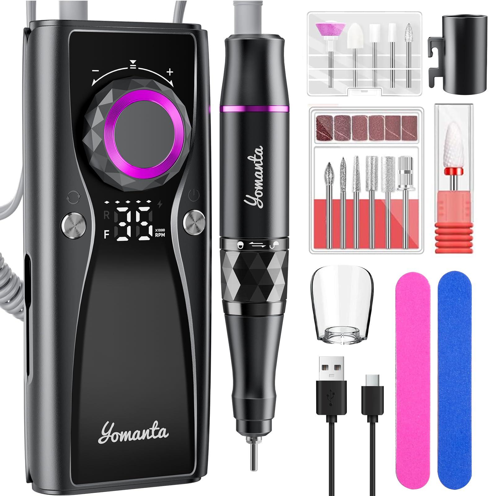 - Multifunctional & Professional Nail Drill Kit: Yomanta electric nail file kit includes 12 nail drill bits, offering versatility for various nail care needs. It can efficiently handle shaping, buffing, grinding, polishing, and removing tasks for acrylic nails, poly gel nails, dip powder nails, thick nails, natural nails, and cuticle dead skin. It allows you to enjoy the ultimate manicures and pedicure care at home or salon.
