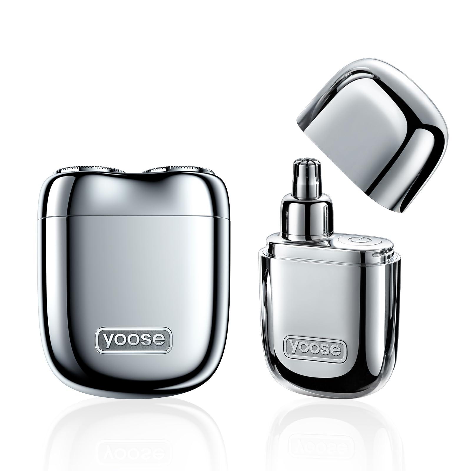 yoose Nose Hair Trimmer and Mini Shaver Bundle, Silver