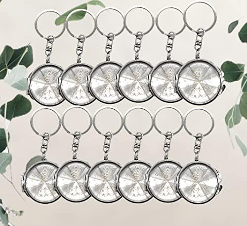 This beautiful Metal compact mirrors keychain feature round shape with both interior surfaces covered with regular and 3x magnified mirrors. This pretty compact mirror is great for Sweet 15, baptism(baptizo) favor christening favor, and first holy communion favor.