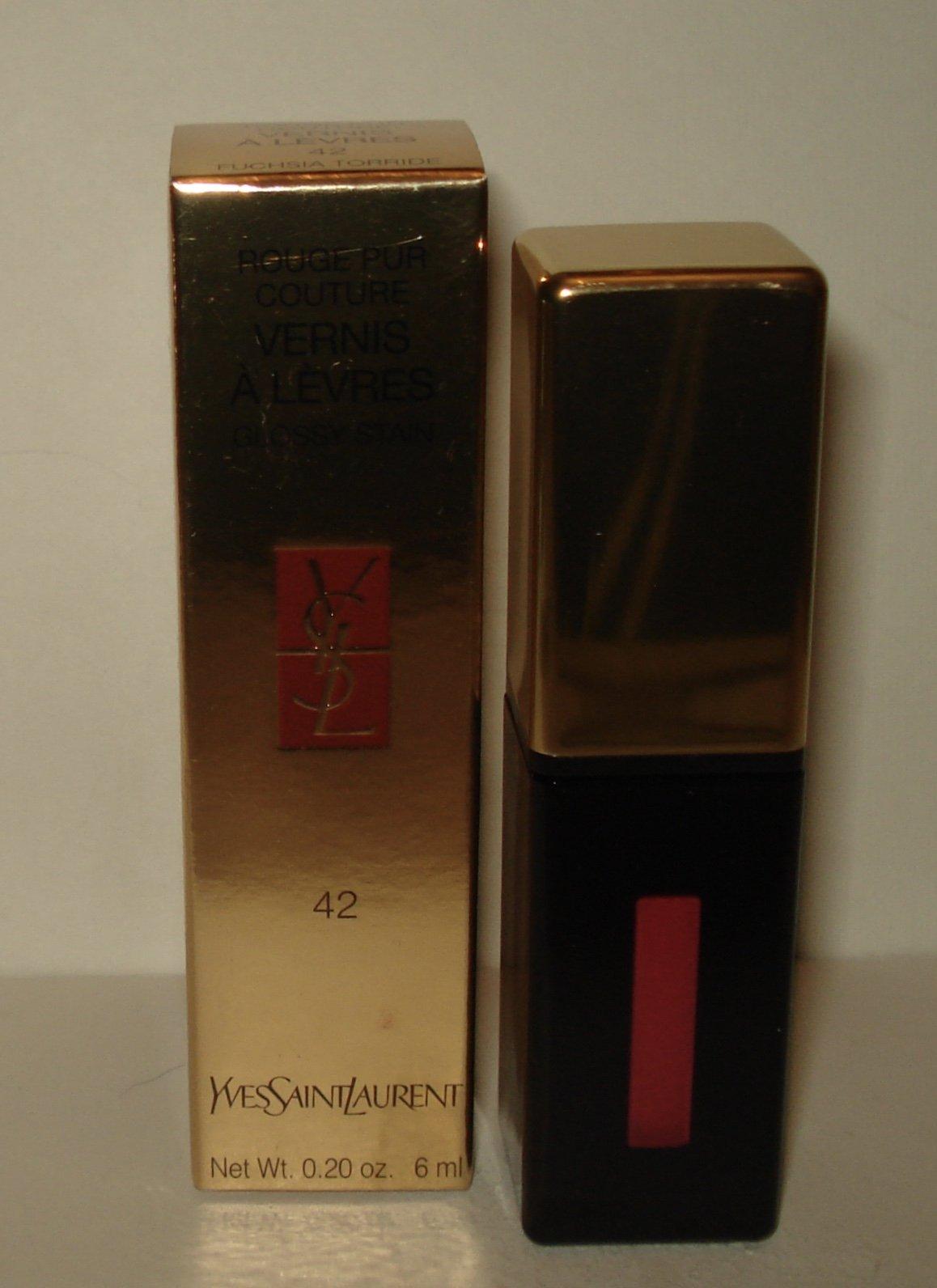 A revolutionary new lip product! Rouge Pur Couture Vernis Lvres Glossy Stain combines the texture and shine of a gloss with the long-wear of a stain for a truly innovative lip product. A lightweight texture that immediately melts onto lips. Rouge Pur Couture Vernis Lvres Glossy Stain delivers intense glossy colour for an extremely long lasting new kind of shine. The applicators unique slanted tip and short soft bristles allow for flawless application with perfect precision. How to use: FOR NATURAL SHINE Apply one coat on the center of the lips and brush towards the outer corners. FOR MORE COVERAGE AND SOPHISTICATION Apply two coats using the outer curved side of the applicator, then dab on the formula generously over lips.