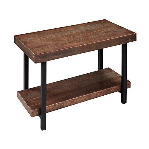 The clean-lined contemporary design gets an industrial upgrade in this coffee table. Crafted of solid wood in a gently-distressed stain for a reclaimed look, this coffee table strikes a two-tiered rectangular silhouette on four black iron legs. The open lower shelf is perfect for stacking coffee table books or fanning out issues of your favorite magazines, while the tabletop provides a perfect platform for displaying trays of appetizers and drinks and your next get-together.