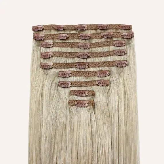 - Full Head Coverage Set - Our 9 piece clip-in hair extensions are perfect for those with fine or thin hair that want to add volume and length without spending hours at the hair salon. Designed for easy installation, each clip in hair piece gives you the flexibility to add however many pieces you need to create your desired look.