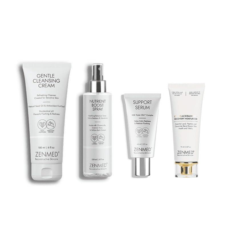 - People suffering from conditions like Rosacea require extra fortifying skincare without the irritating extras. Protect and nourish the skin with this special combination of redness-reducing botanicals and emollients. With the addition of Nutrient Boost Spray and Omegaceramide+, you will instantly notice your skin's amplified moisture and glow.