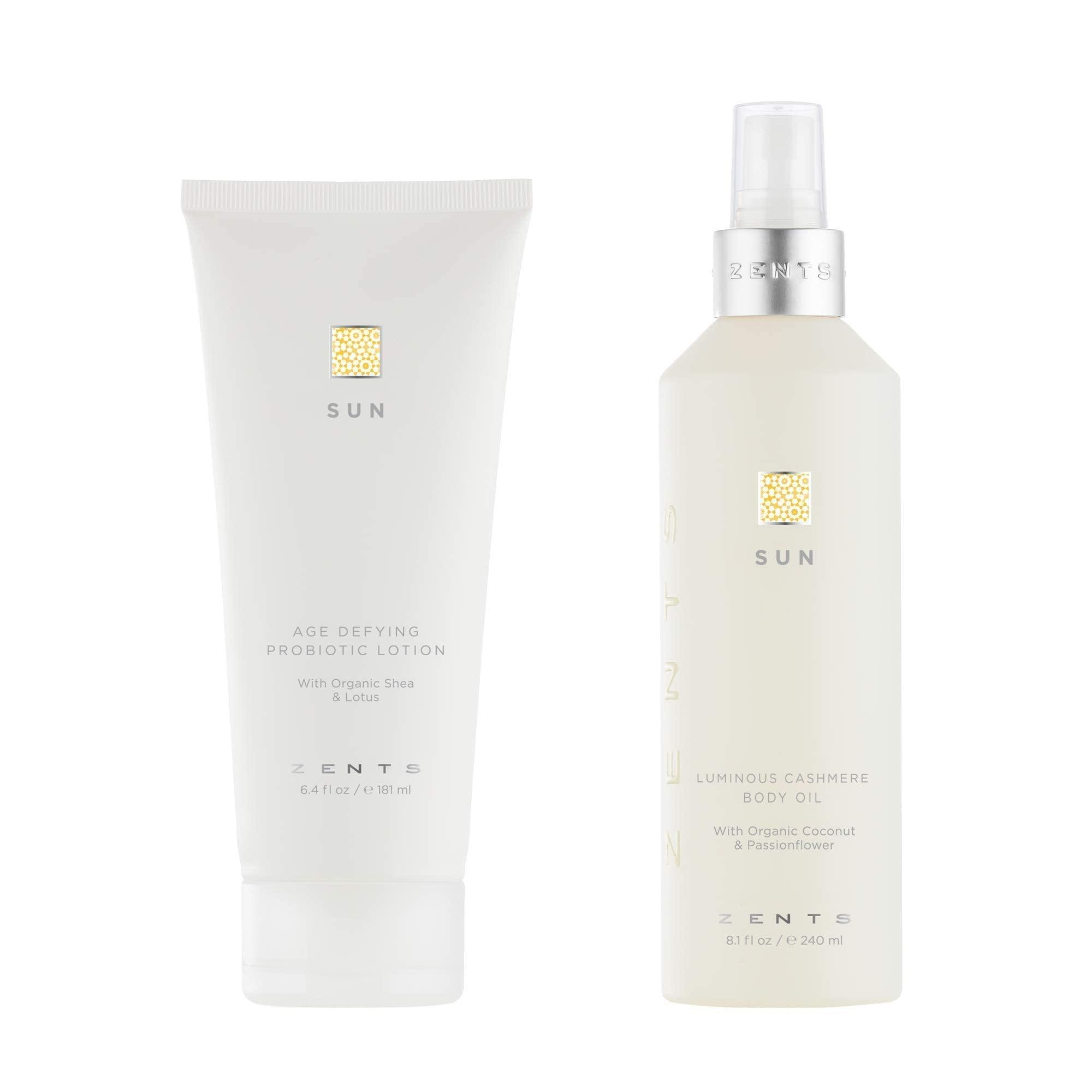 Immerse your skin in this luxe age defying duo of our body lotion and cashmere body oil duo. It's sure to help skin look its youngest, smoothest and softest.