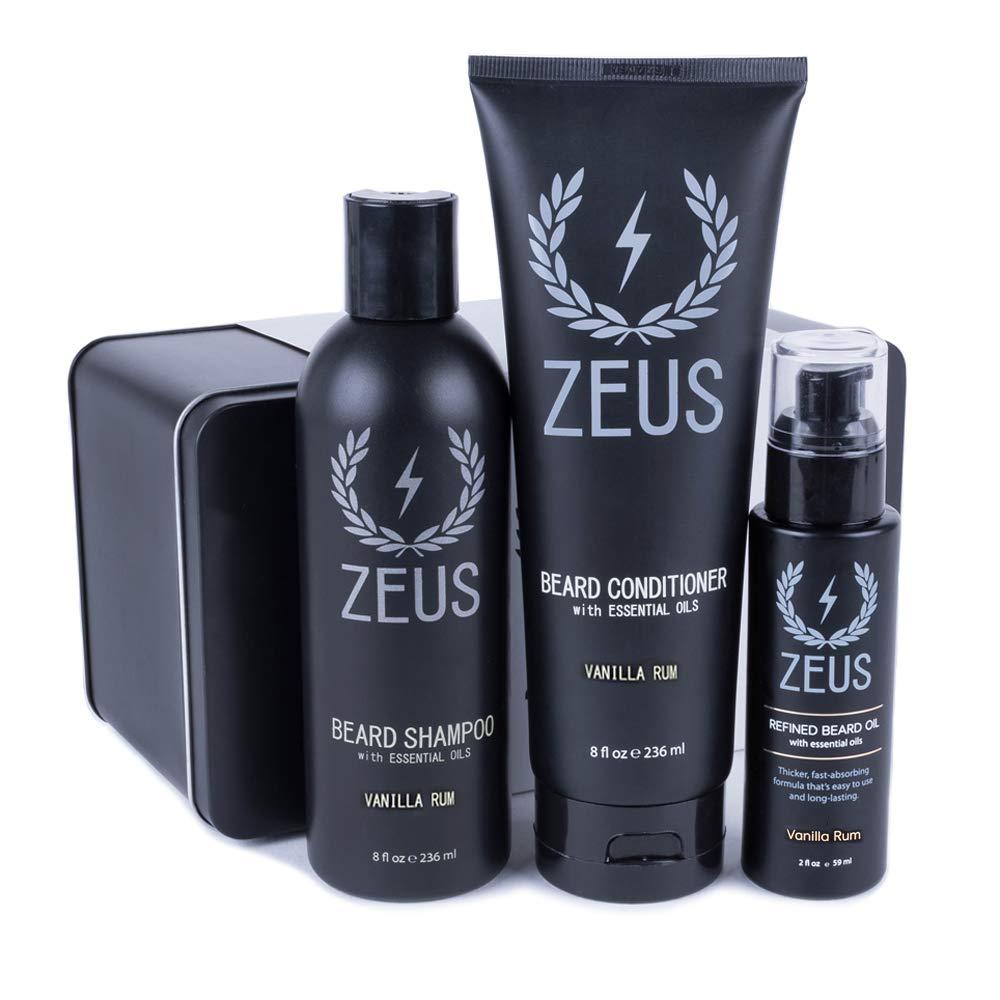 - WHATS IN THE BOX: Our Starter Set for Thick or Textured type beards includes: (1) Zeus Beard Shampoo (8 fl oz), (1) Zeus Beard Conditioner (8 fl oz), and (1) Zeus Refined Beard Oil (2 fl oz)